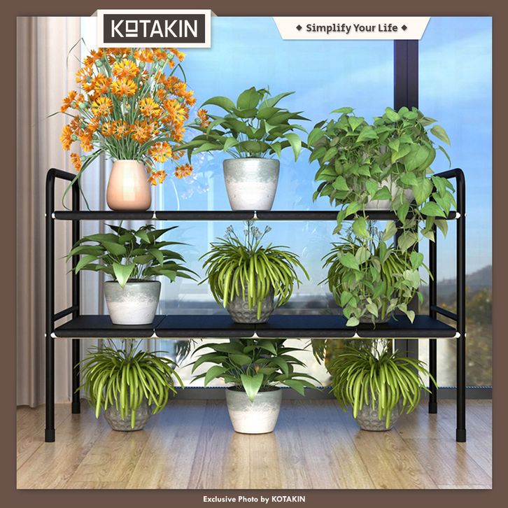 KOTAKIN Rak Susun Tingkat Besi Stainlees Tempat Penyimpanan Pot Vas Tanaman Serbaguna Anti Karat