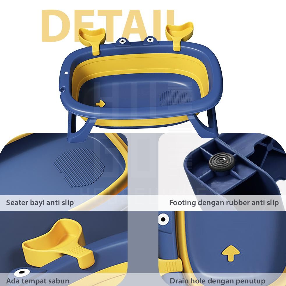 TT60 HUGO Bak Mandi Bayi Lipat / Foldable Baby Bath Tub / Tempat Mandi Bayi Portable dengan Bantal Mandi Viral