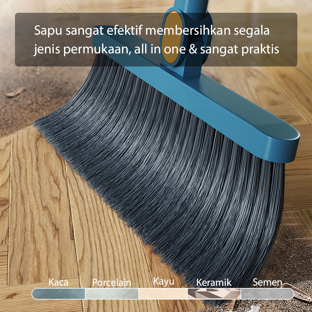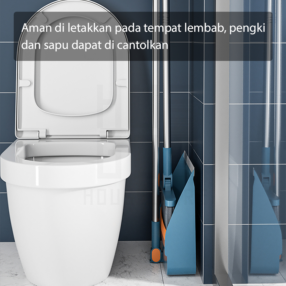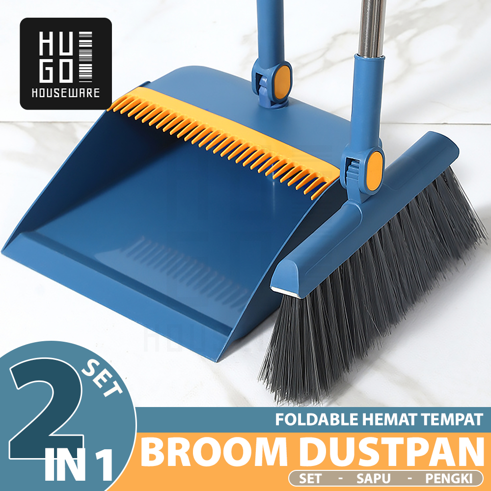 HUGO Set Sapu Pengki Alat Pembersih Lantai Broom Set Dustpan Sapu Lipat Praktis Sapu Lantai Pengki Set Multifungsi