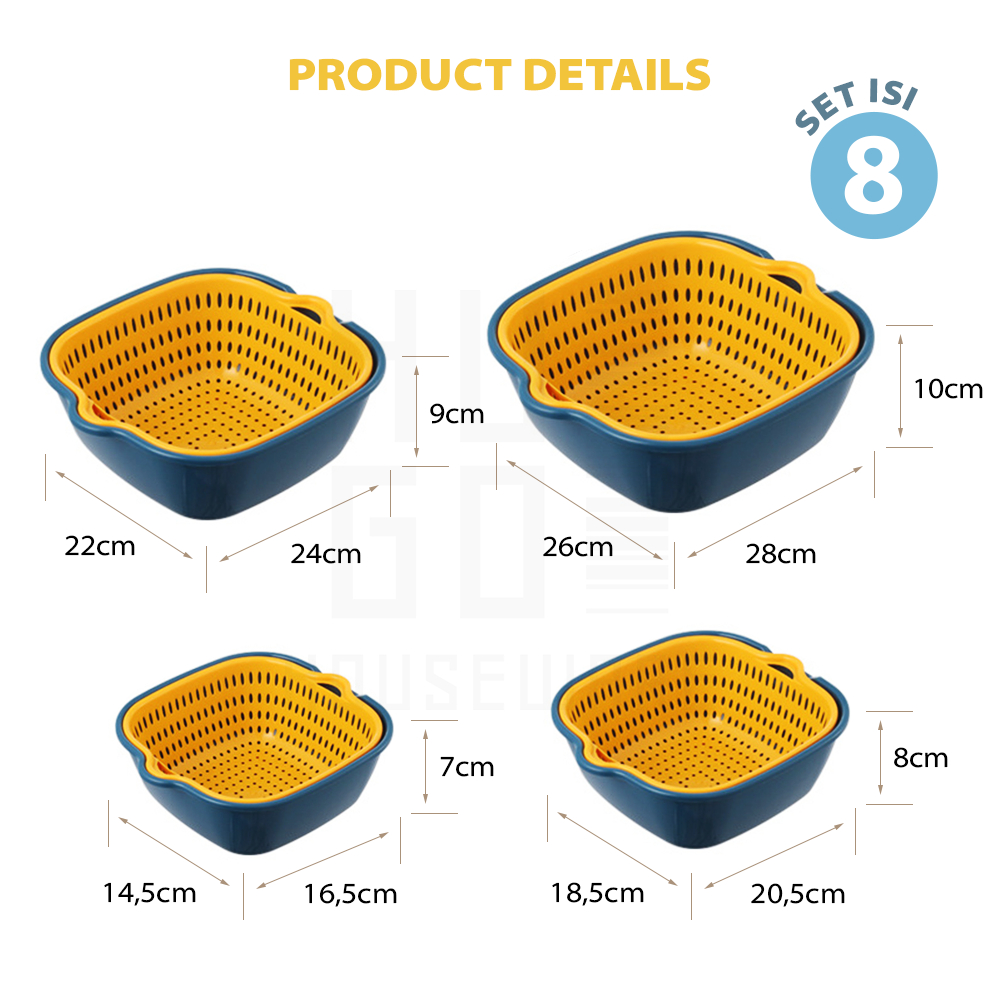 PROMO HUGO Keranjang Pengering Sayuran Buah Wadah Peniris Cuci Sayur Buah Saringan Serbaguna 8 in 1
