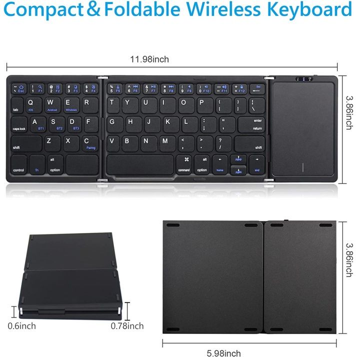 Keyboard Lipat 3 Wireless Bluetooth Foldable Keyboard Touchpad