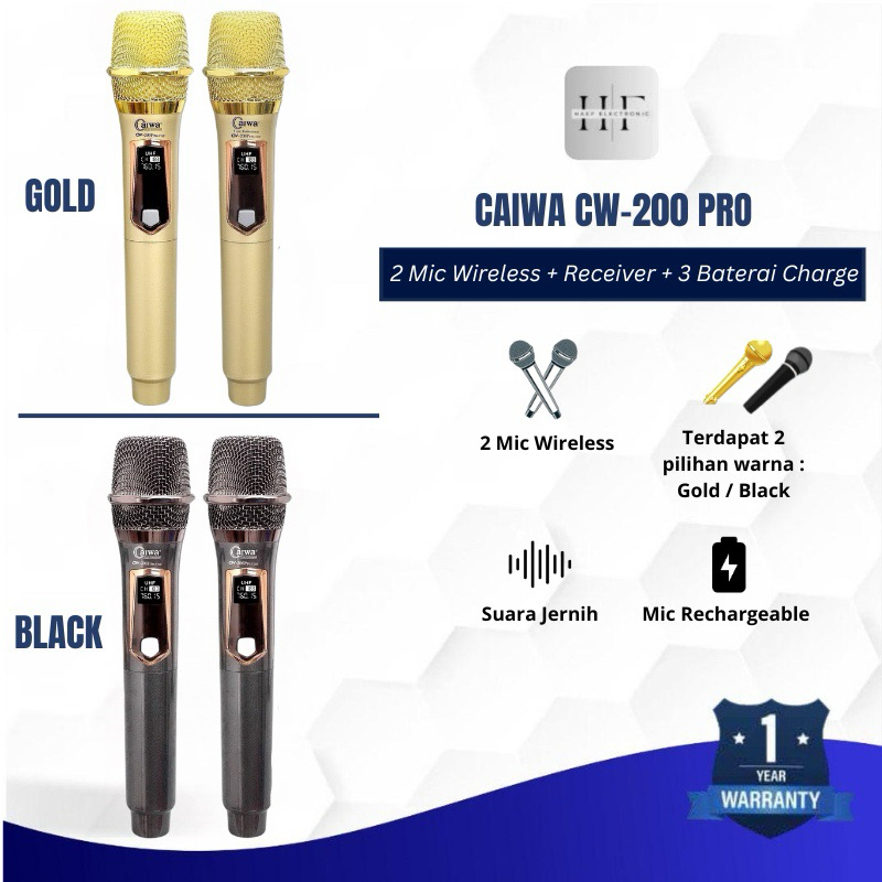 MICROPHONE WIRELESS / MICROPHONE BLUETOOTH / MIC WIRELESS CAIWA CW-200 PRO DUAL ANTI NOISE BISA DI CHARGE ORIGINAL