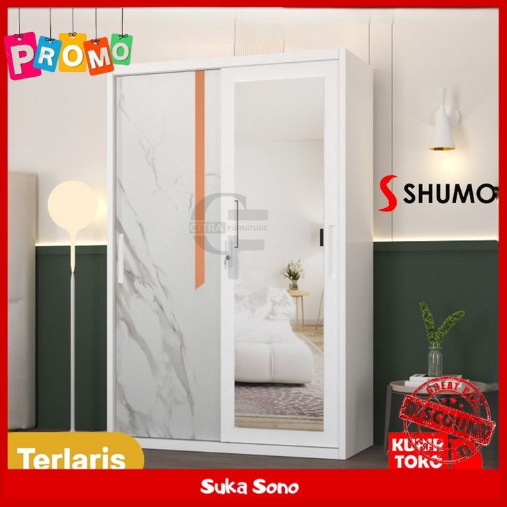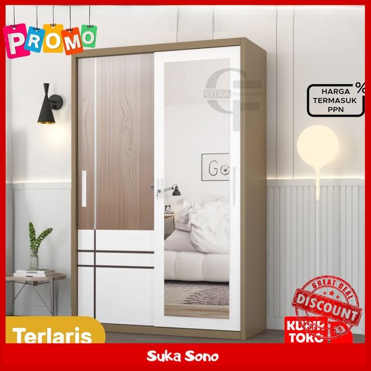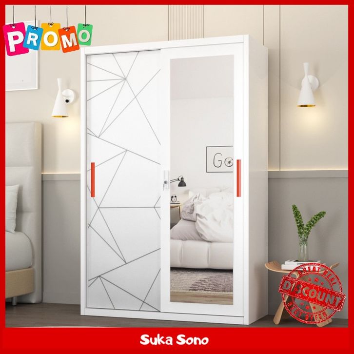 Lemari Pakaian Besi 2 Pintu Sliding Jumbo | Lemari Baju Sleding Kaca CTR1