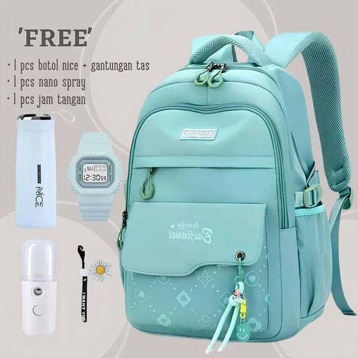 Tas sekolah Anak Laki Laki Perempuan Backpack Ransel Korean Style Fhasion Untuk Smp Sma Free 4 PCS Botol Jam Nano
