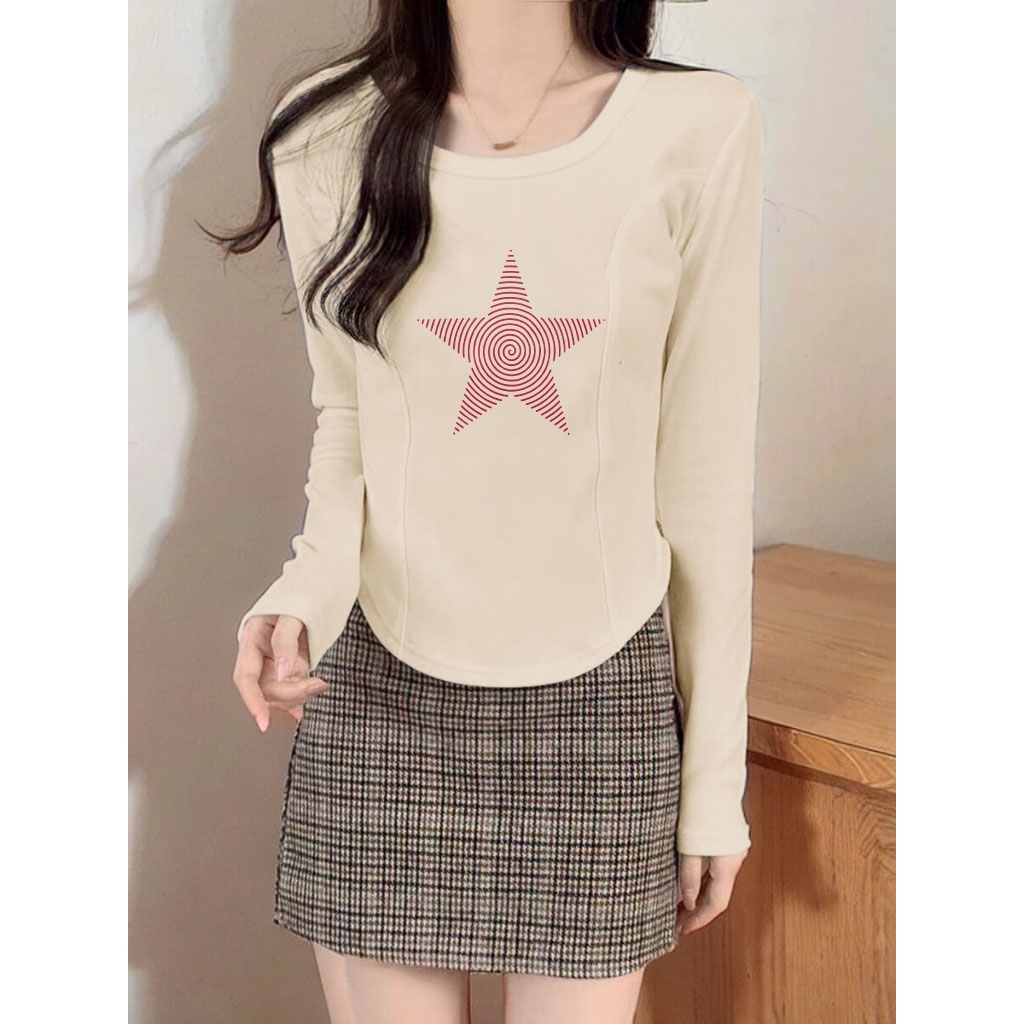 Baju Atasan Wanita Terbaru Korean Style | POLA Garis bintang | Crop Top Lengan Panjang | Baju Kaos Wanita Ketat K