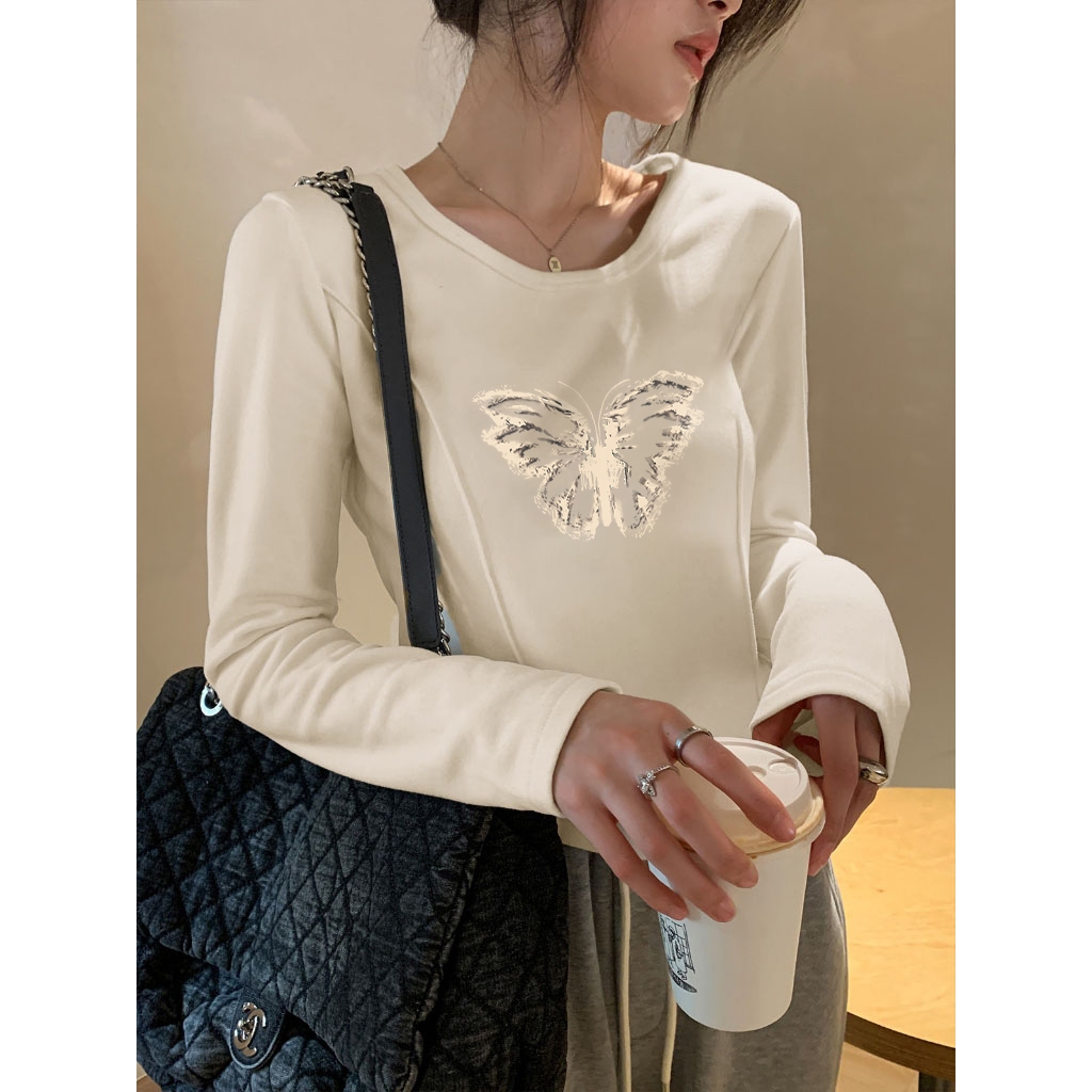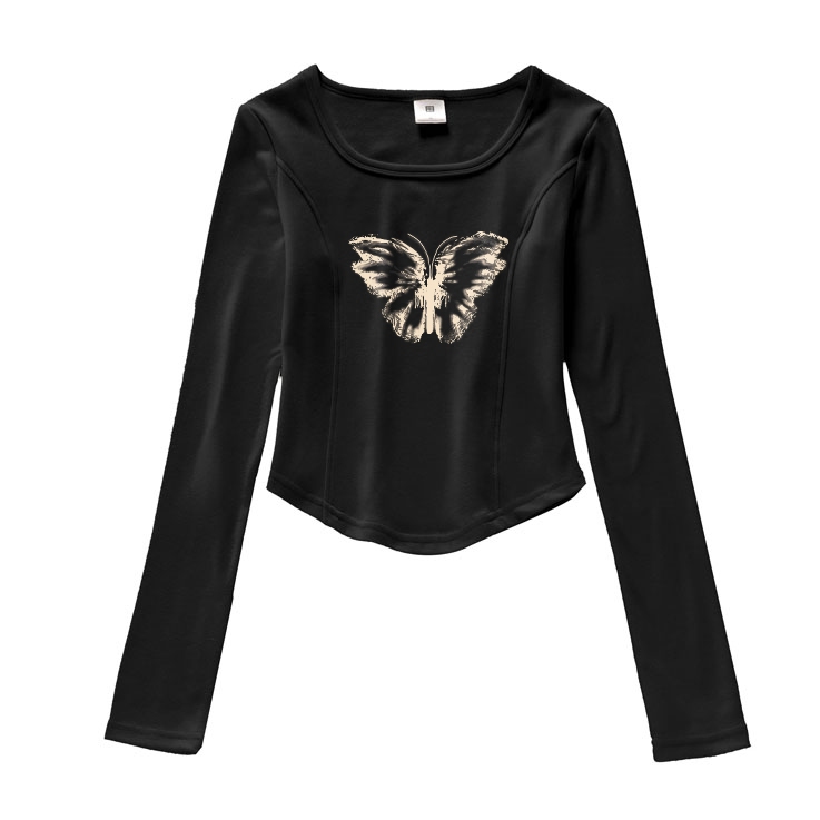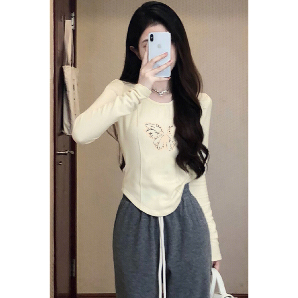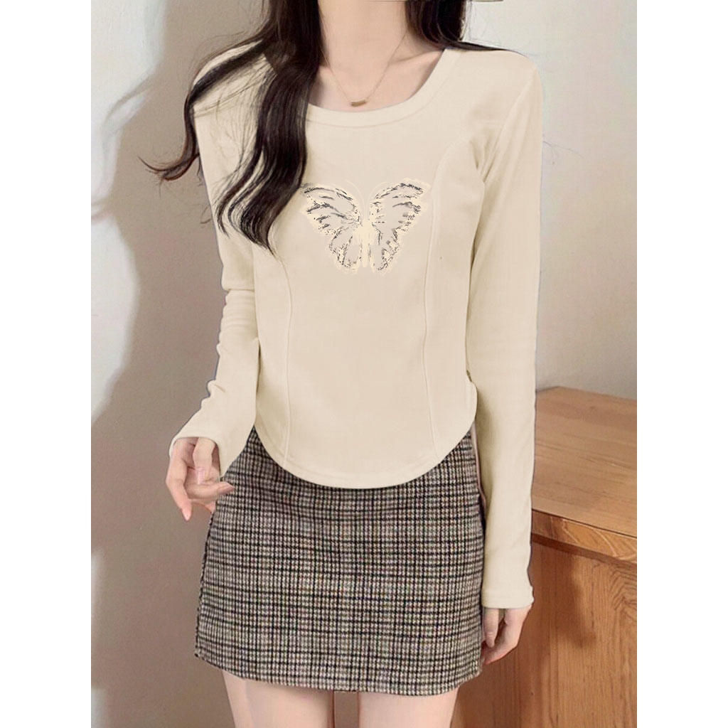 Baju Atasan Wanita Terbaru Korean Style | kupu-kupu berkilau | Crop Top Lengan Panjang | Baju Kaos Wanita Ketat K