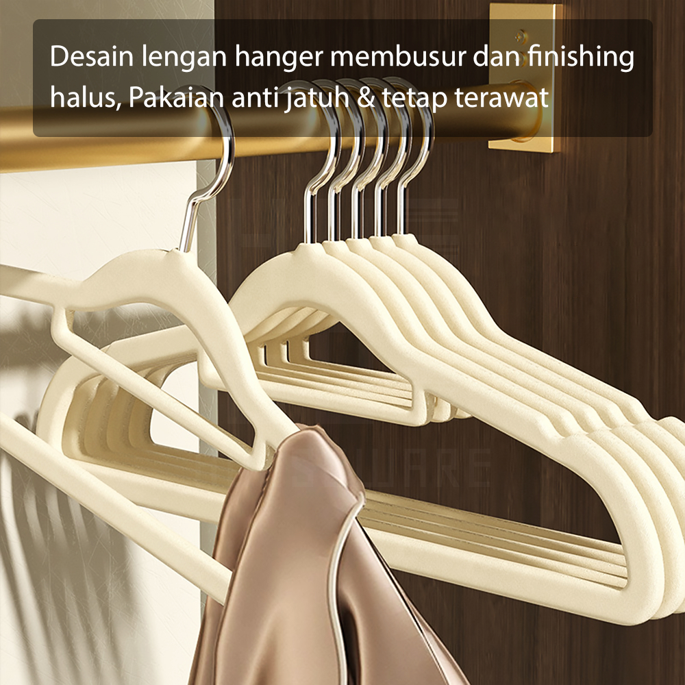 PROMO HUGO Gantungan Baju Dewasa Bahan Suede Hanger Pakaian Dewasa Isi 10 Pcs Premium Hanger Bludru Bahan Tebal
