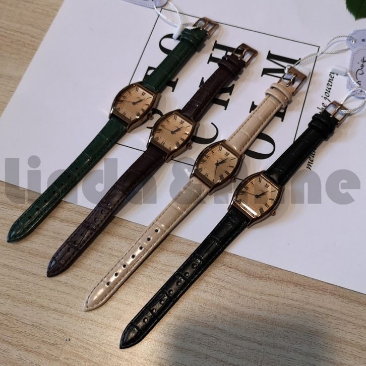 Jam Tangan Quartz Dial Kotak Kecil Casual Retro Untuk Wanita