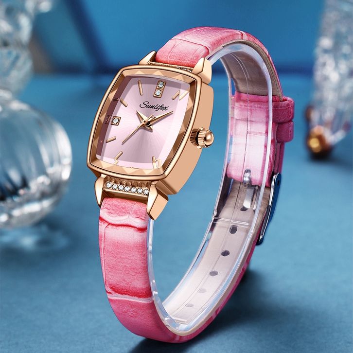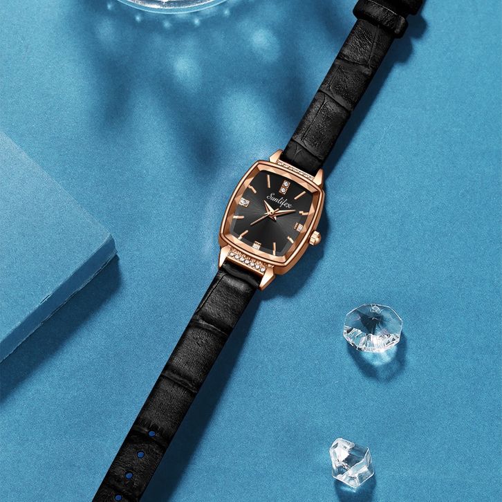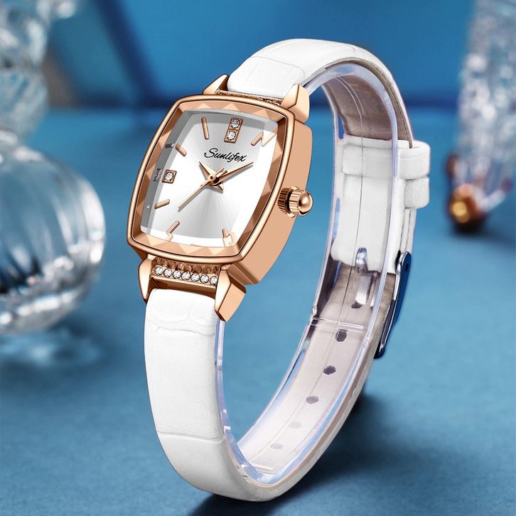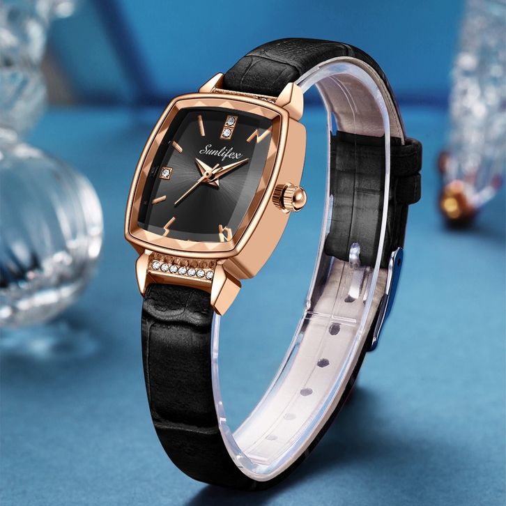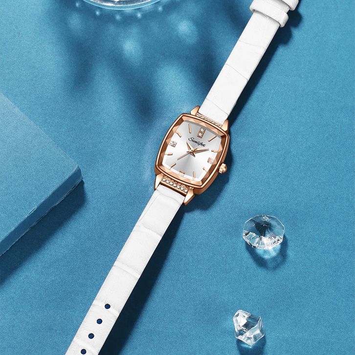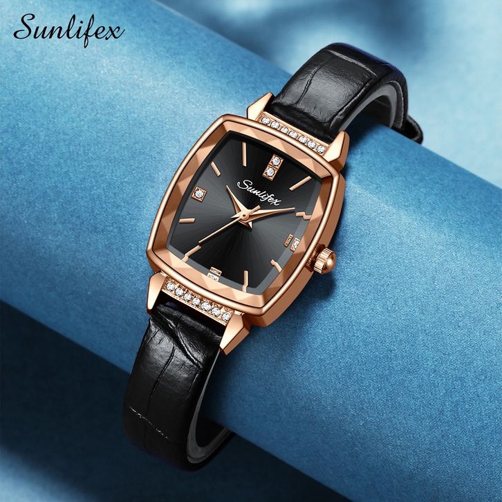 Sunlifex Jam Tangan Wanita 8006 Original Berlian Anggun Tali Kulit Kuarsa Jam Tangan Cewek