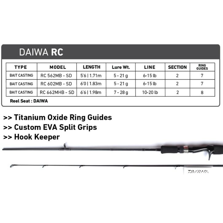 Joran BC Daiwa RC 562MB 602MB 662MHB Baitcasting Titanium Oxide Ring Guide Casting Toman Gabus Hampala Crossfire