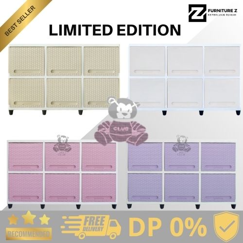 Murah Lemari Pakaian Baju Plastik triple club flip 2 susun Rak TV Rotan Buffet TV 6 kotak