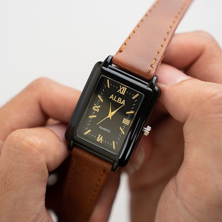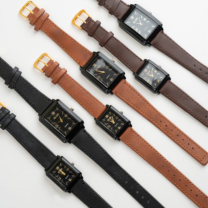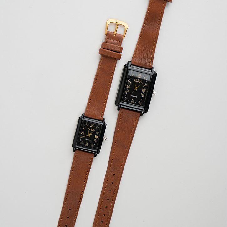 Jam Tangan Couple Alba Pria Wanita Premium Elegan Modern Indah Pasangan Cinta Tali Kulit | J-AN06