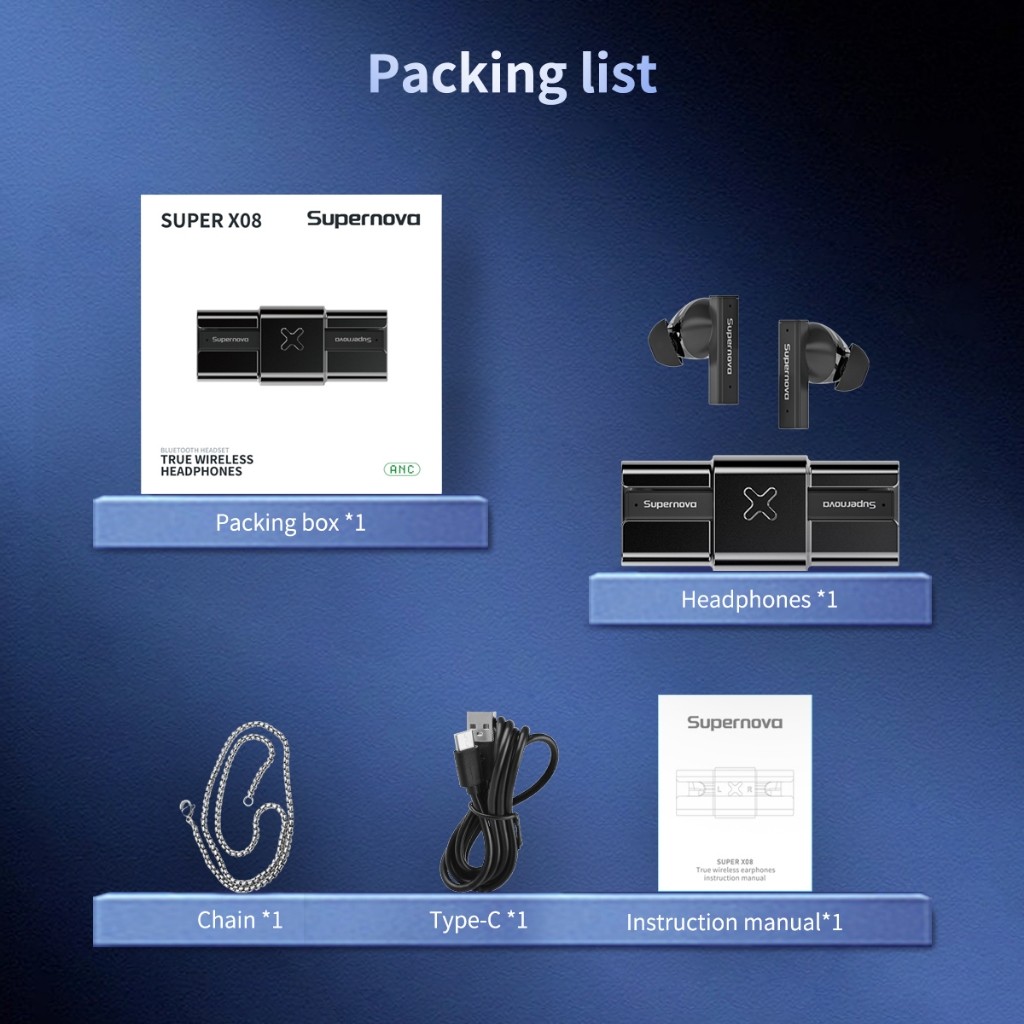 Supernova X08 ANC Headset Bluetooth Headphone Earphone Headset Headphone Earbuds TWS