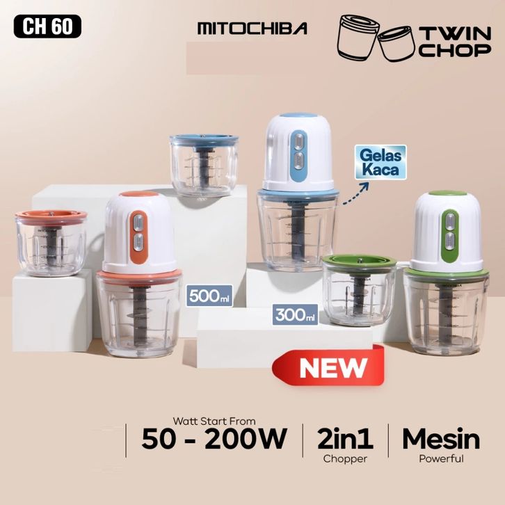 MITOCHIBA Chopper TWINCHOP CH60 500ml | Alat Penggiling dan Penghalus Bumbu