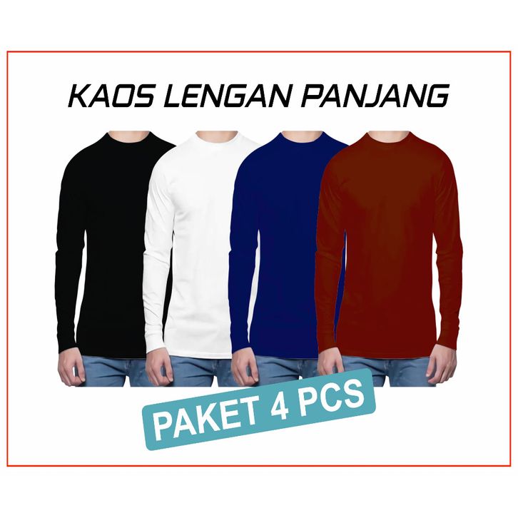 Paket Kaos Polos Lengan Panjang 4 Pcs Warna Random Free Stiker