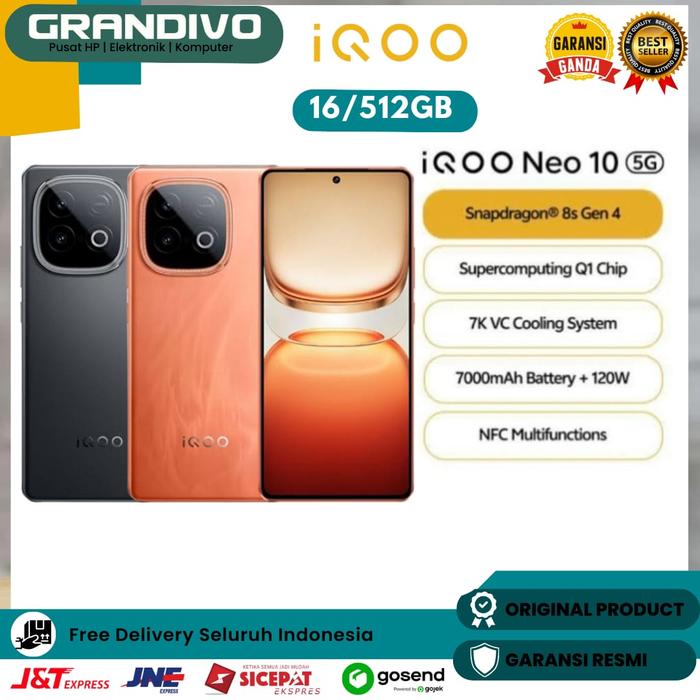 iQOO NEO 10 RAM 16/512 GB SNAPDRAGON 8s GEN 4 AMOLED 7000mAh PRO GAMING GARANSI RESMI - Grandivo