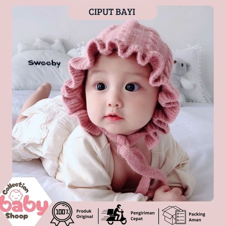 Topi Kupluk BAYI RAJUT Casual Aksen Ruffle Untuk Bayi Usia 0 sampai 3 Tahun
