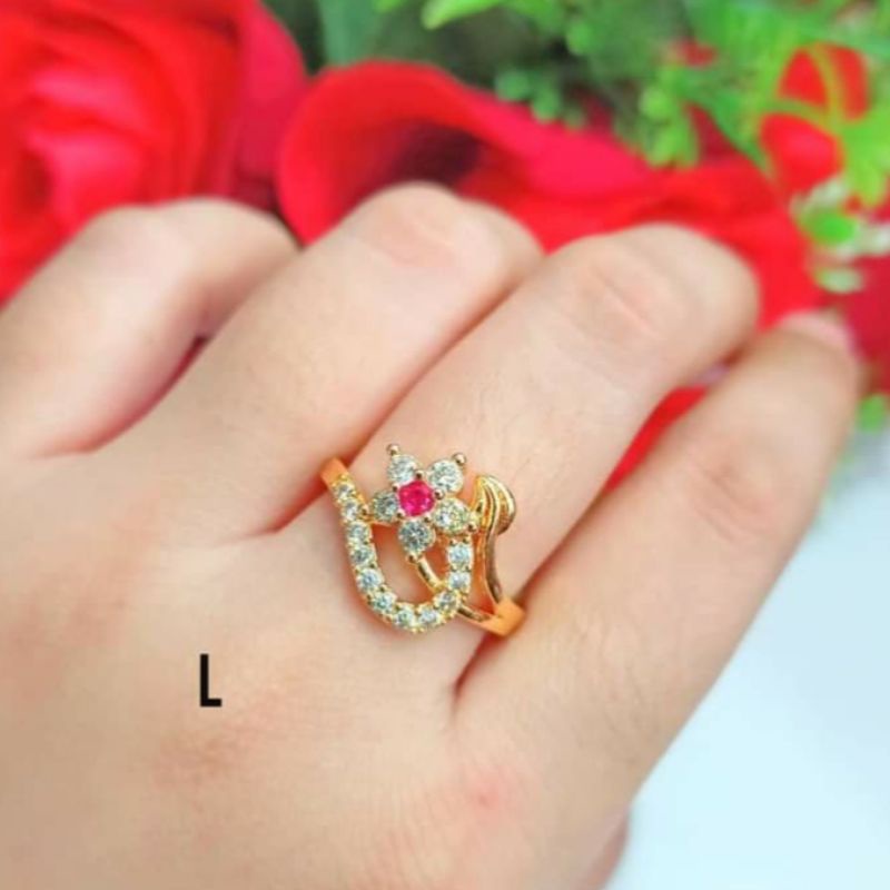 Cincin TITANIUM Dewasa Perm ata kombinasi warna go ld perhiasan remaja modern