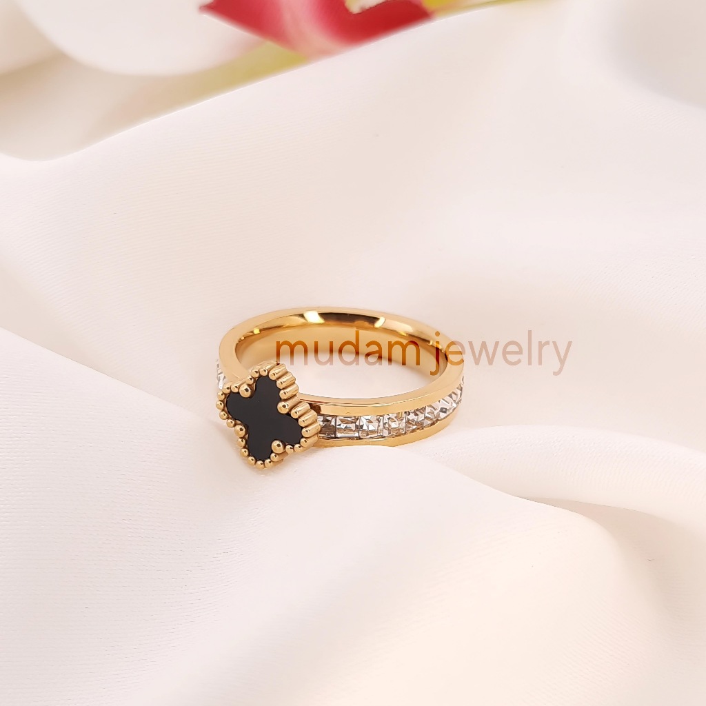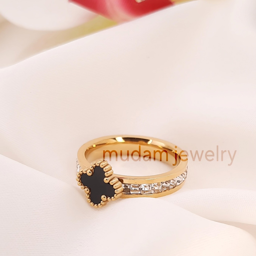 Cincin Titanium Model Daun Semanggi Bergerigi Diam onds