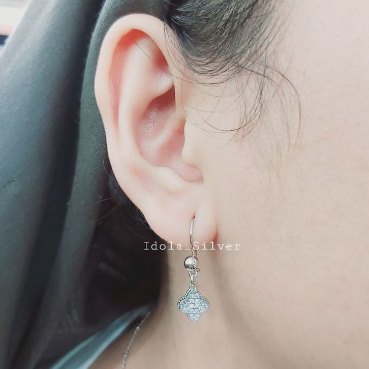 AN TING PERAK ASLI SILVER WANITA 925 LAPIS MAS PUTIH MODEL AGOGO POLOS GANTUNGAN BUNGA PERMATA - PERHIASAN PERAK WANITA