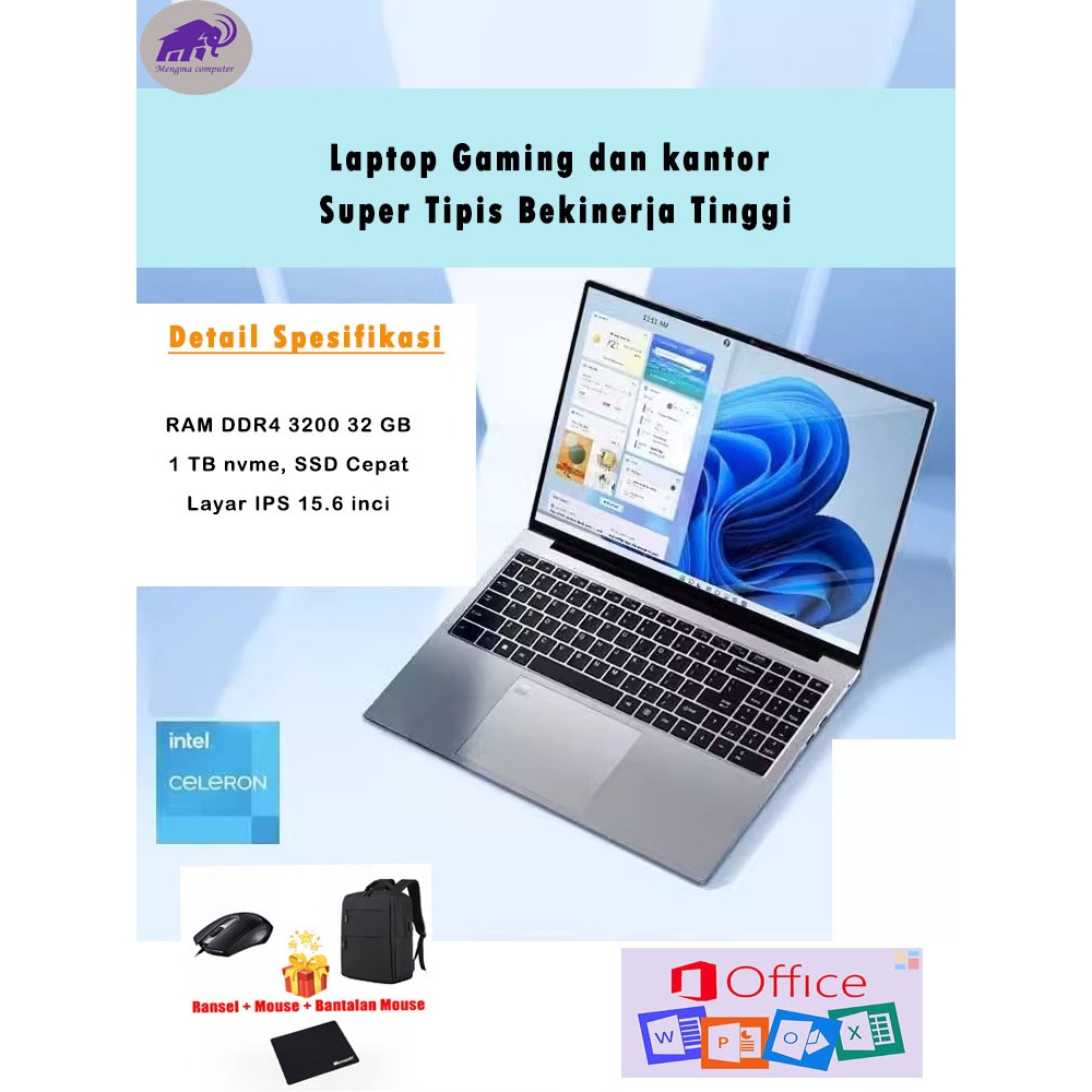 MA touchscreen Laptop Baru 15.6 Inci untuk Gaming dan Kantor - Performa Tinggi dan Tipis, Prosesor Intel Generasi ke-13