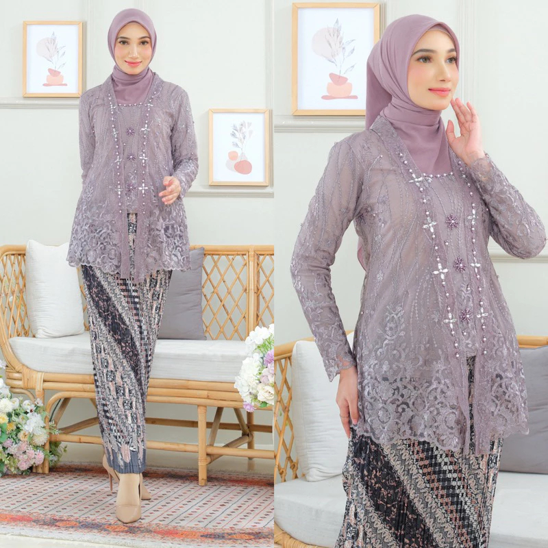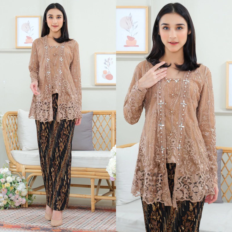 Kebaya Modern Terbaru Kutu Baru Tille Payet Brukat Series Premium Set Kebaya Wisuda Lamaran Tunangan Kondangan Terlaris