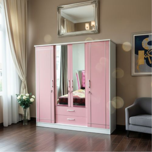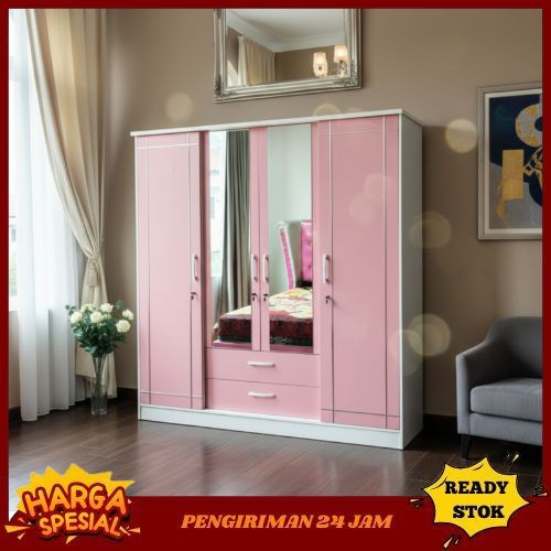 lemari kaca minimalis Lemari Pakaian 4pintu Pink Model Pakai Cermin Mewah Murah Minimalis besar jumbo