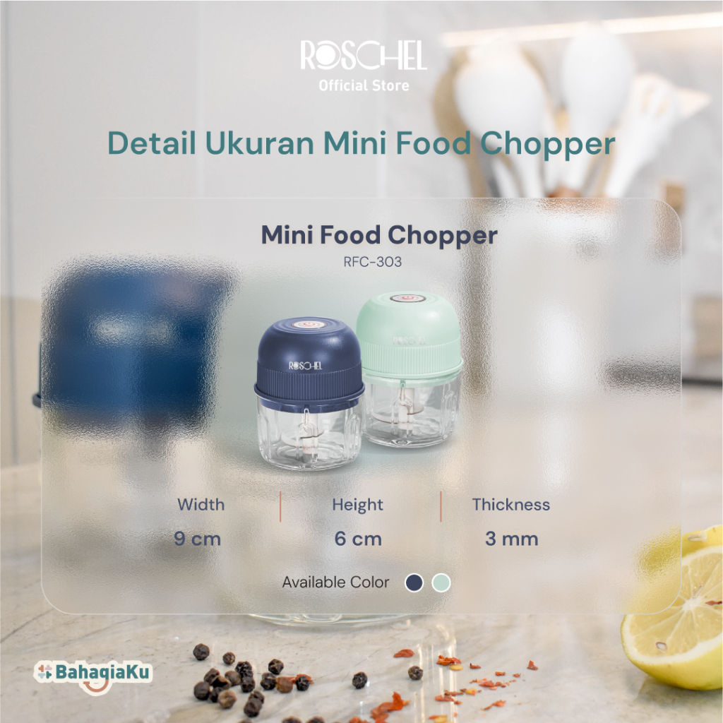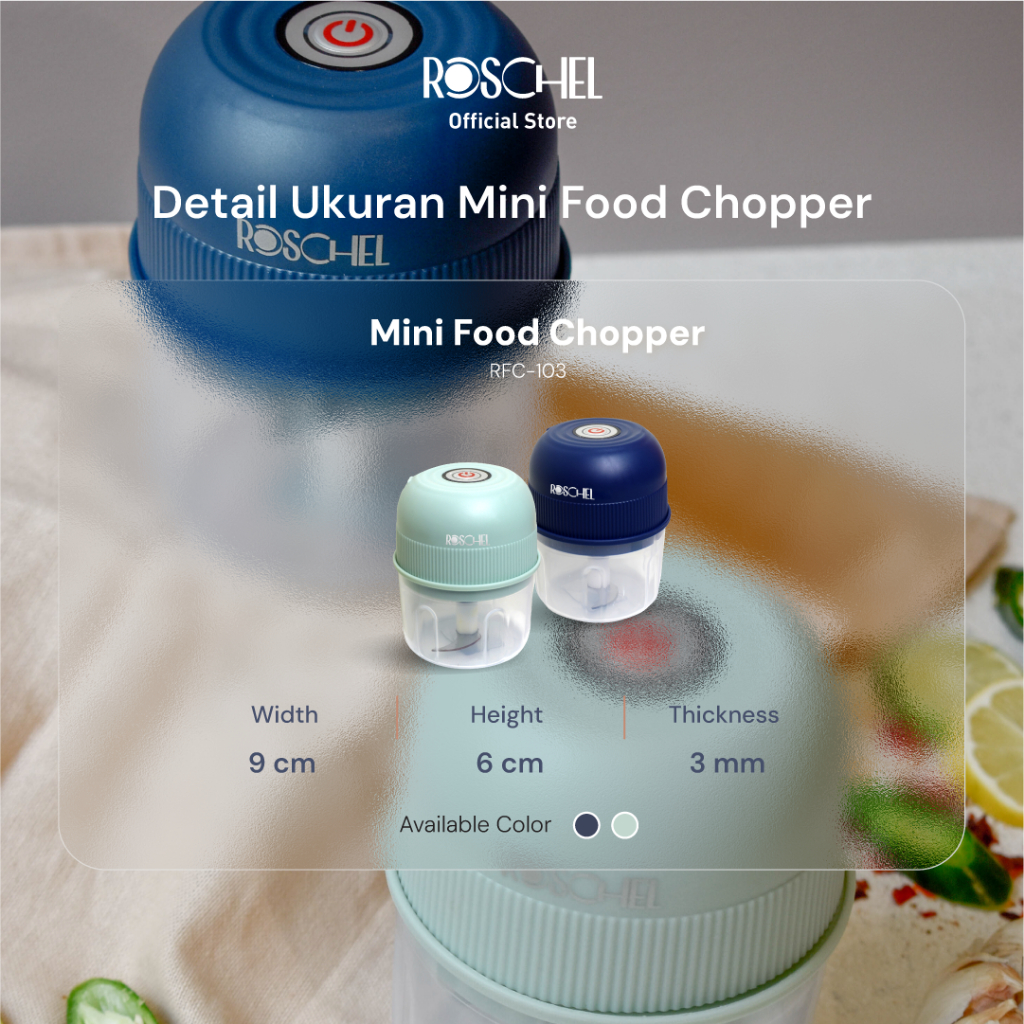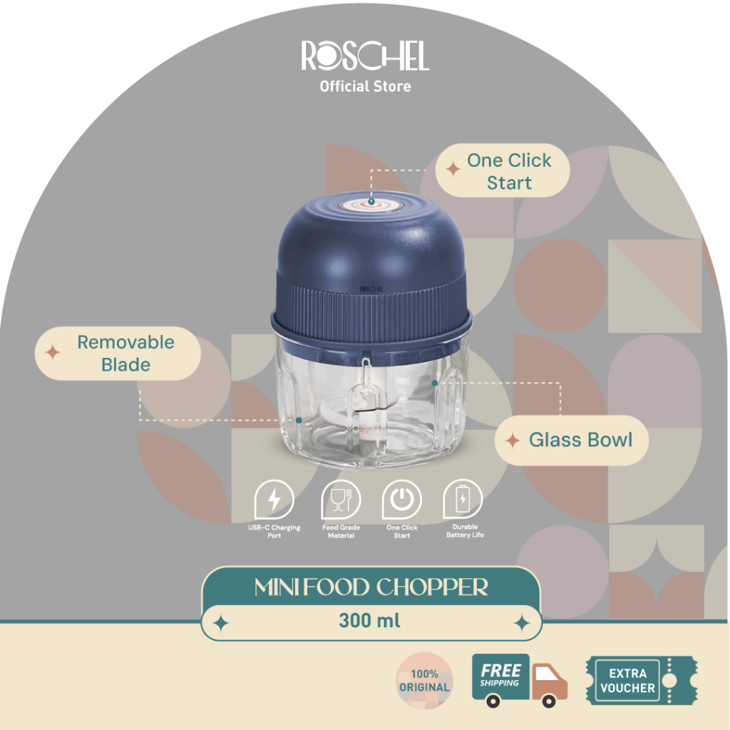 Roschel Mini Food Chopper Kaca 300ml Portable One-Touch With Safety Lock Food Grade Food Processor MPASI Multifungsi Ble