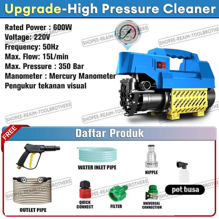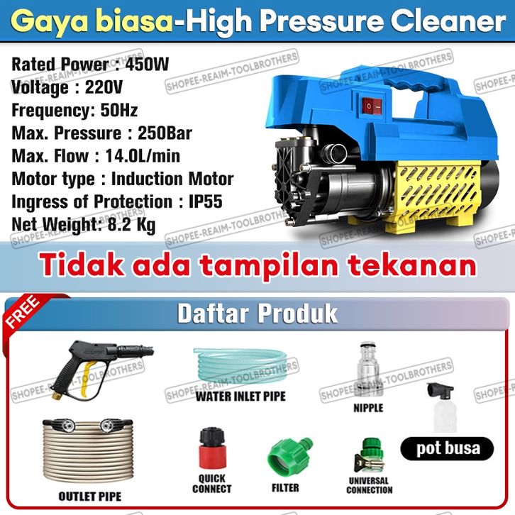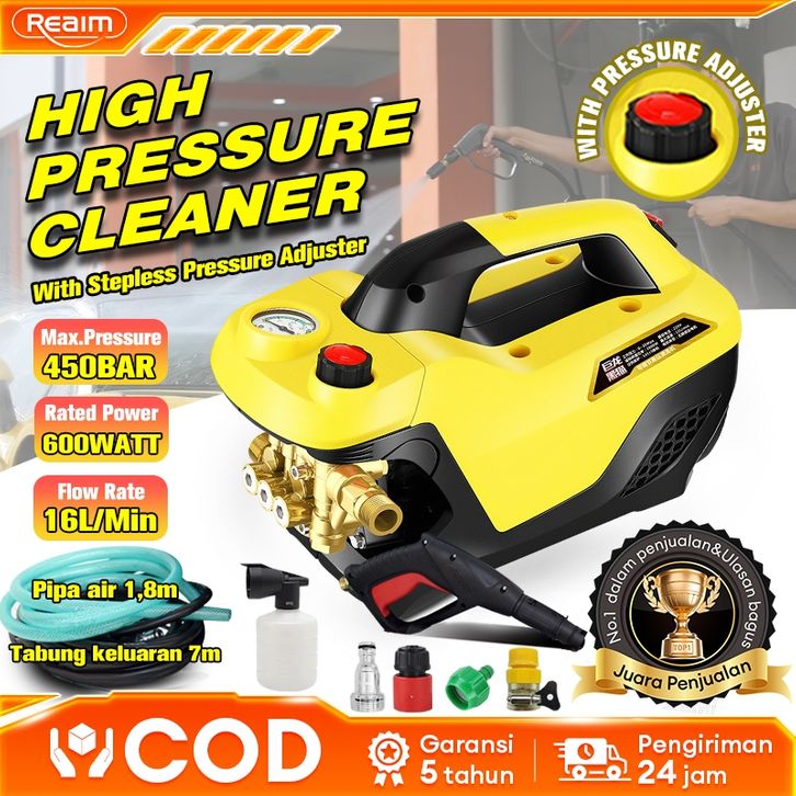 Reaim 450Bar 600W Jet Cleaner Tekanan Air Tinggi Alat Cuci Motor Mobil Ac Listrik Portable Mesin Steam Salju Mini Murah