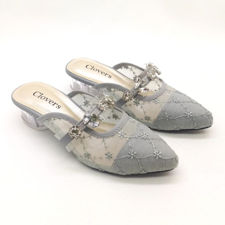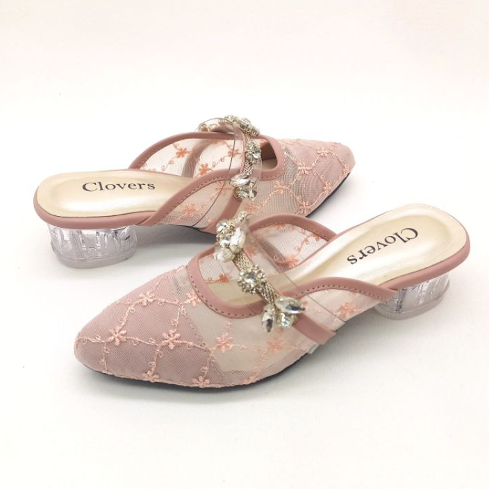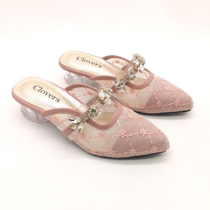 Sandal Anak Perempuan | Sandal Pesta Anak | Sandal Brukat Hak Kaca 3 cm