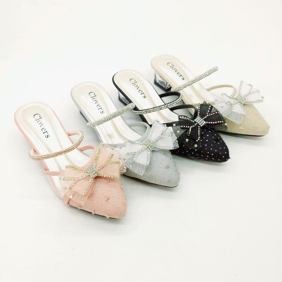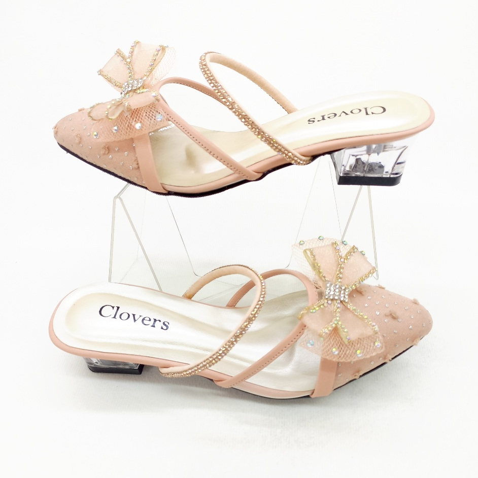 Sepatu Sandal Pesta Anak Perempuan Brukat Hak Kaca 3 Cm (CL - 202)