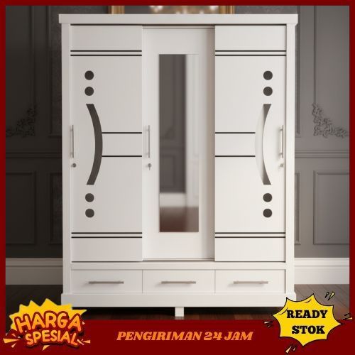 lemari kaca minimalis lemari pakaian lemari KAYU PINTU 3 SLIDING MINIMALIS LEMARI KACA