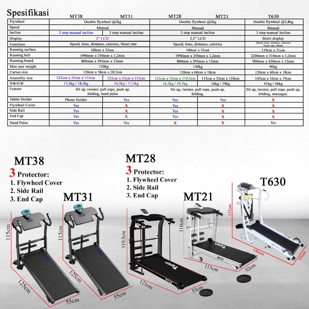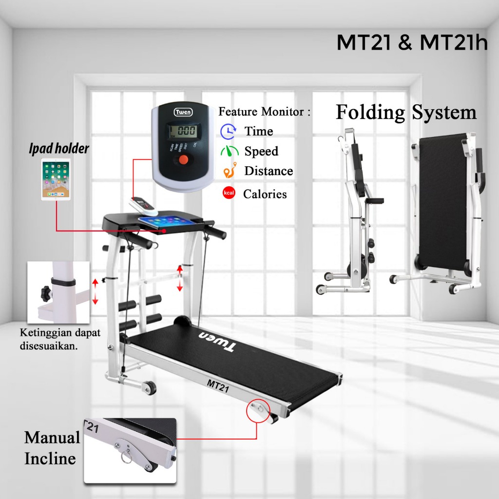 Treadmill Elektrik Manual MT21 MT28 MT31 T38 T630 Treadmill Portable Treadmill Lipat Treadmil Alat Olahraga di Rumah