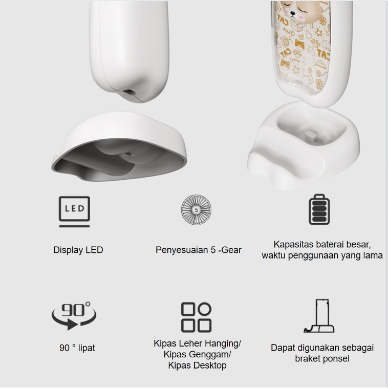 Disney Kipas Angin Mini Portabel Usb 25000 mAh Kipas Lipat/Leher 5-Speed Wind LED Display/Kipas Angin Mini Genggam