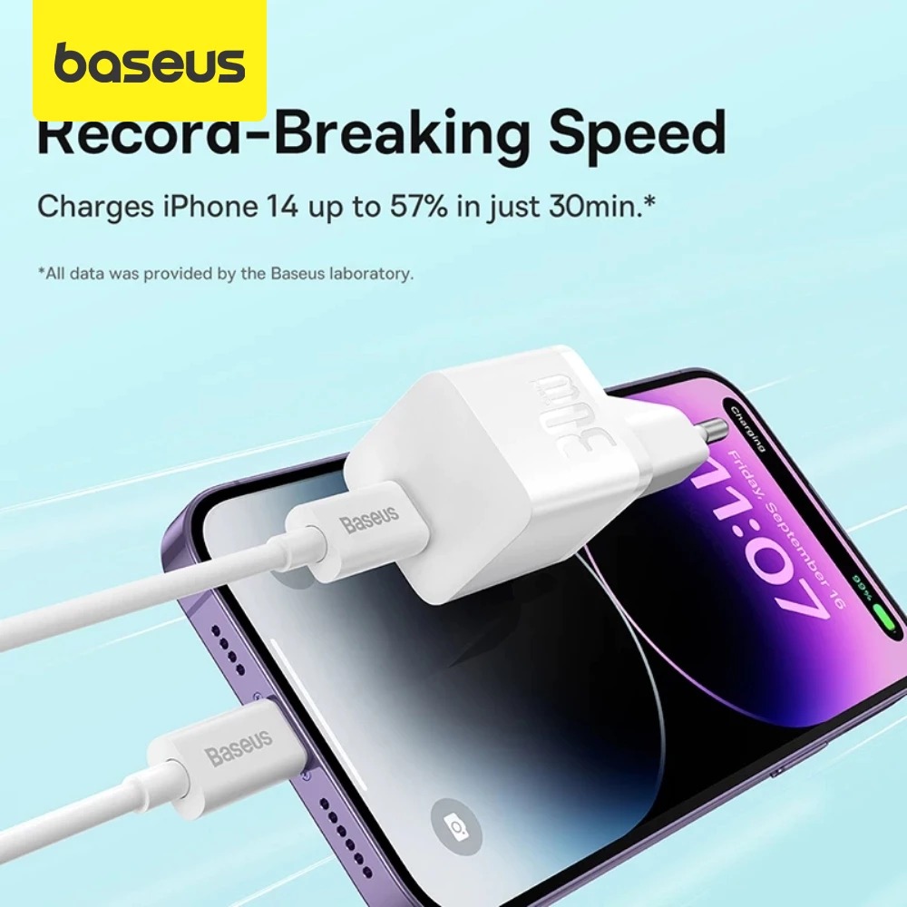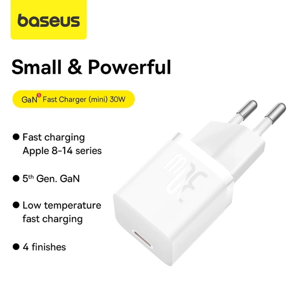 Kepala Charger iPhone Baseus GaN5 Mini 1C 30W EU + Kabel Gan5 Fast Charger 100W / Charger Set Type C / Gratis Ongkir