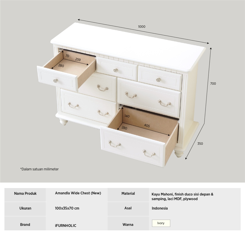 LEMARI PLASTIK LEMARI KAYU IFURNHOLIC Amandla Wide chest Lemari Laci Kayu Klasik Buffet TV Lemari Pakaian Minimalis