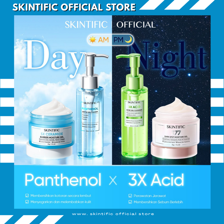 SKINTIFIC OFFICIAL STORE Set 4PCS Day And Night Skincare Wajah Brightening Cleanser Day Set Moisturized dan Night Set