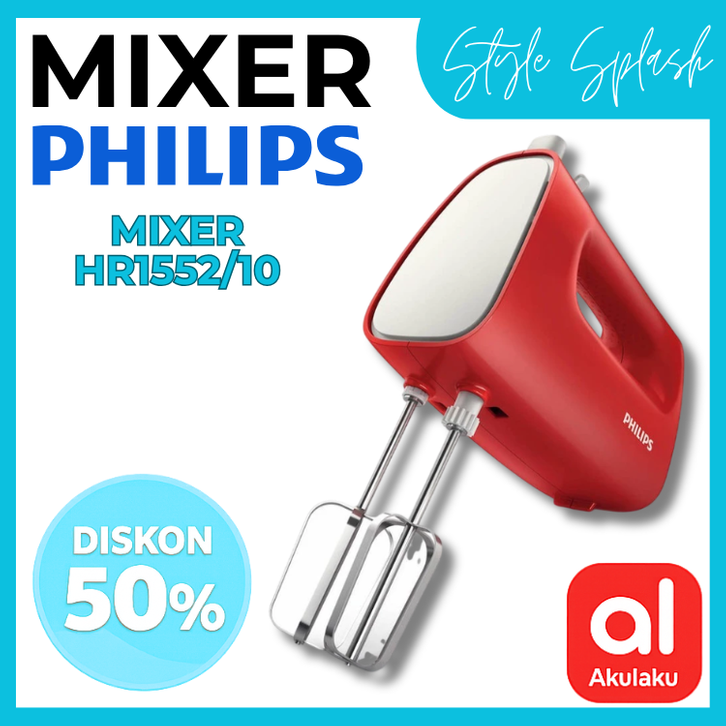 Mixer Philips - HR1552/10 - Hand Mixer - Mikser Philips - Mixer Pencampur - Mixer Kue - Merah