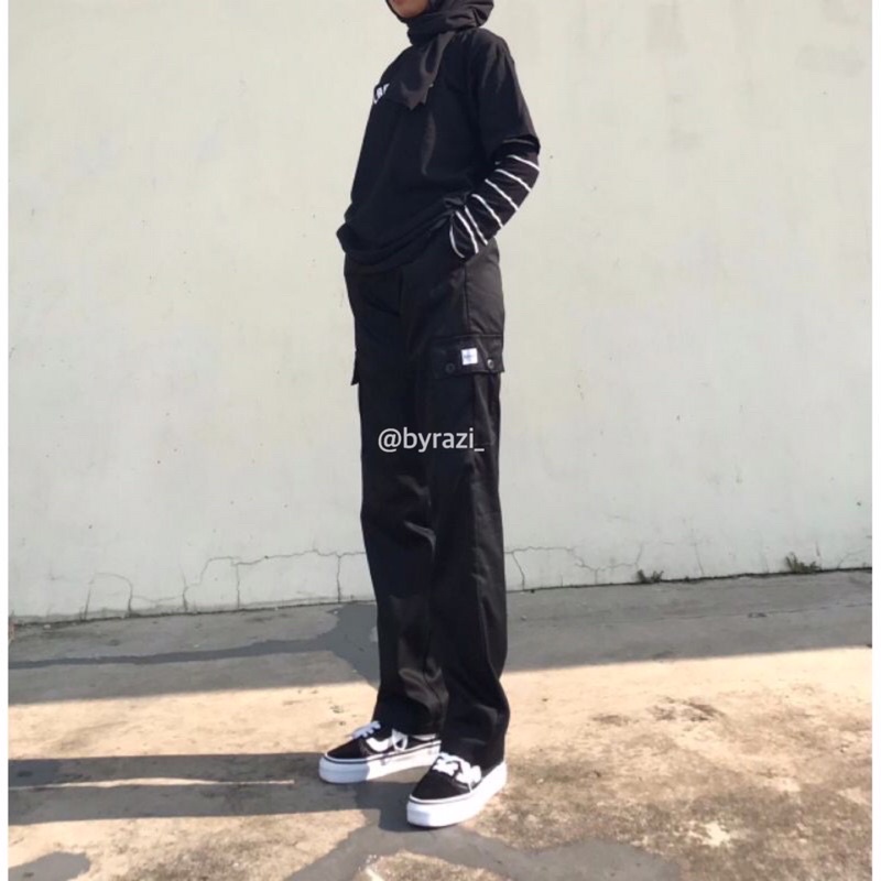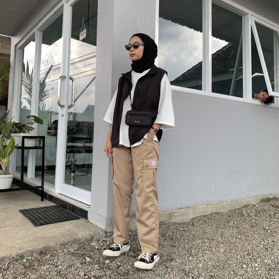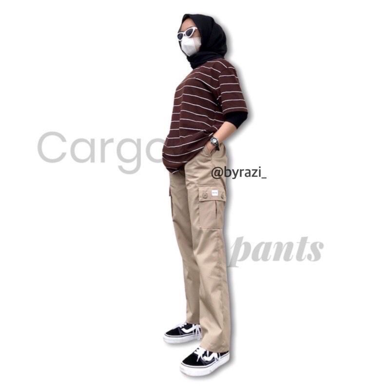 byrazi_ Celana Cargo Jumbo Panjang Wanita Pria Mocca Hitam Army