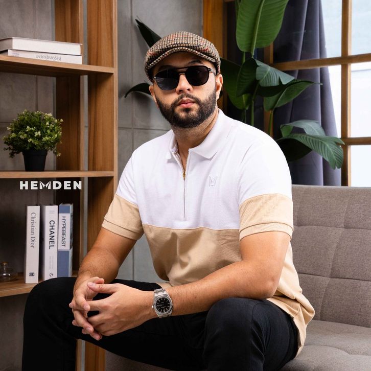 Kaos Polo Shirts Men's Zipper Two Tone Hemden - White Cream PL003