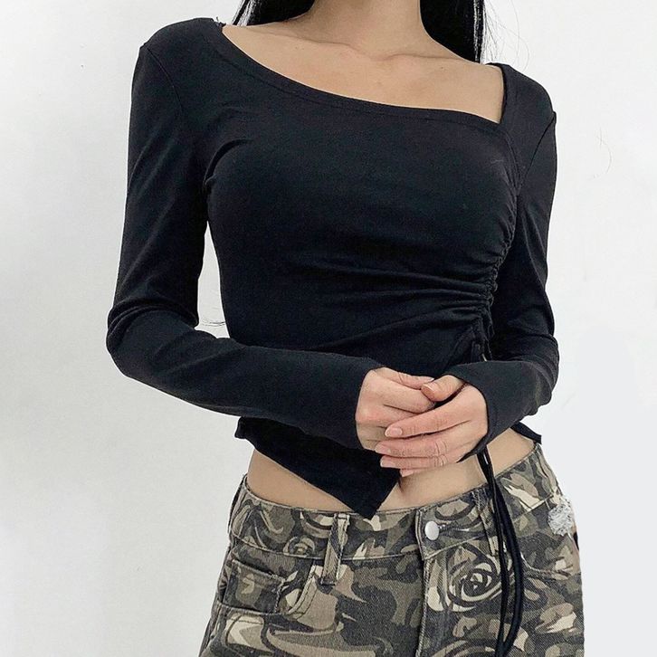 Atasan Crop Top Wanita Square Neck Korean Style 6057