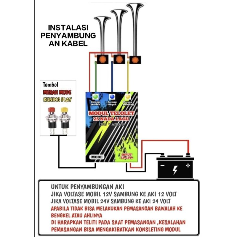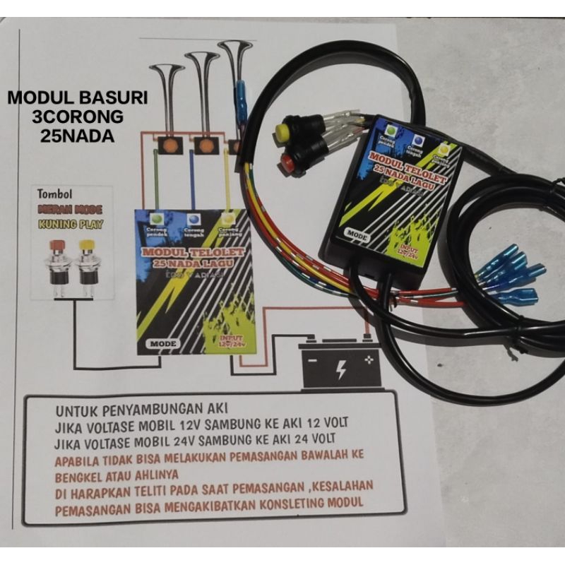 MODUL KLAKSON TELOLET BASURI 3 CORONG 25 NADA 12V / 24V MOBIL TRUK & BUS