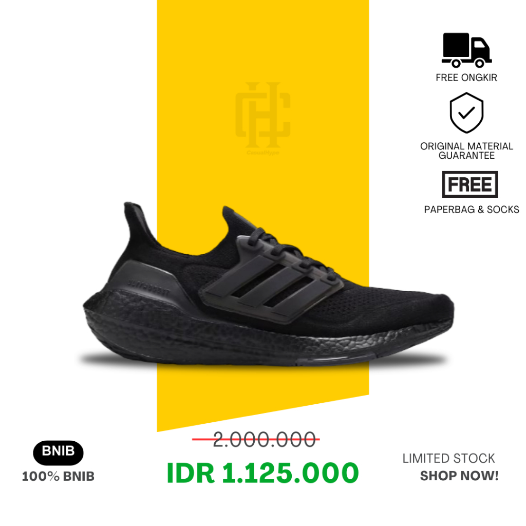 [PROMO] SEPATU PRIA ADIDAS ULTRABOOST 21 ALL BLACK 100 PERSEN BNIB AUTHENTIC