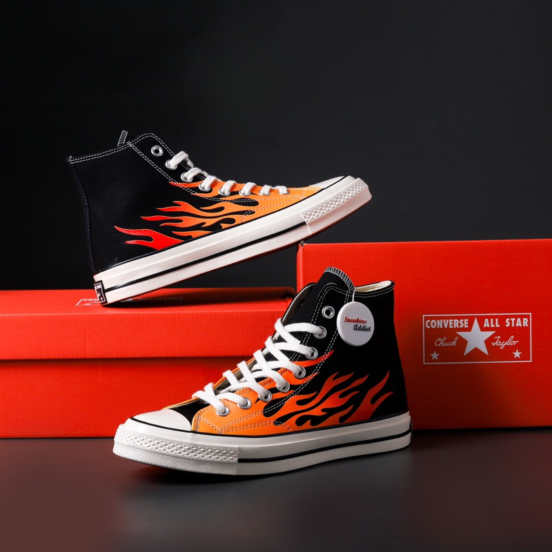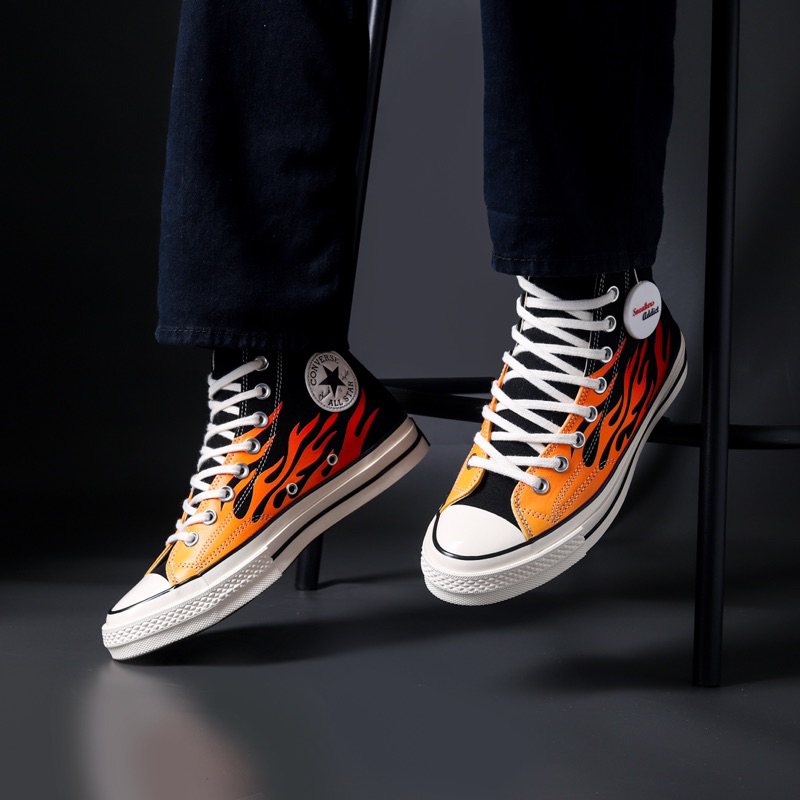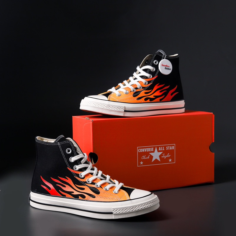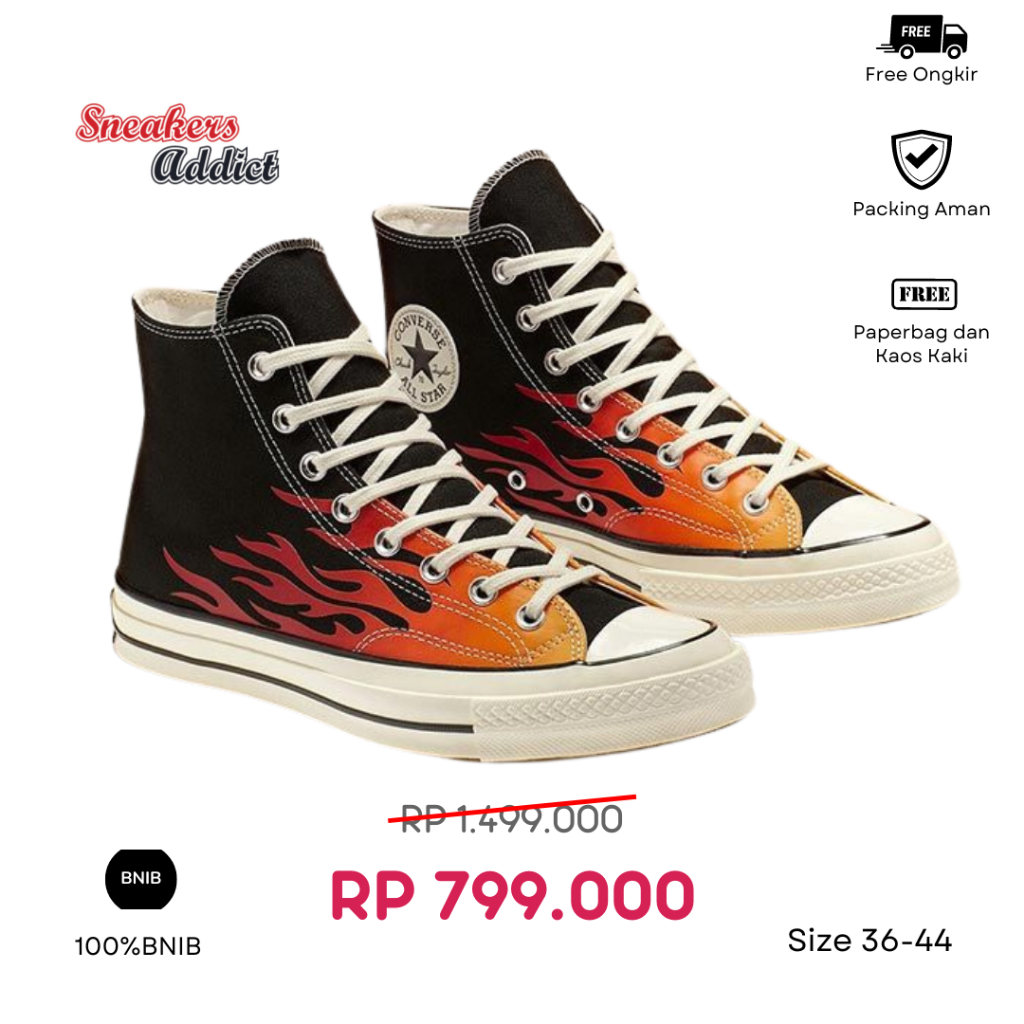 [PROMO] SEPATU SNEAKERS CONVERSE CHUCK TAYLOR 70S ALL STAR HIGH FLAME ARCHIVE PRINT BLACK WHITE BW 100 PERSEN BNIB