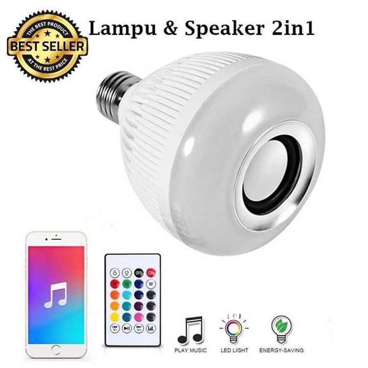 LAMPU BOHLAM RGB BLUETOOTH SPEAKER MUSIK 2 IN 1 WARNA WARNI BLUETOOTH REMOTE SPEAKER LED E27