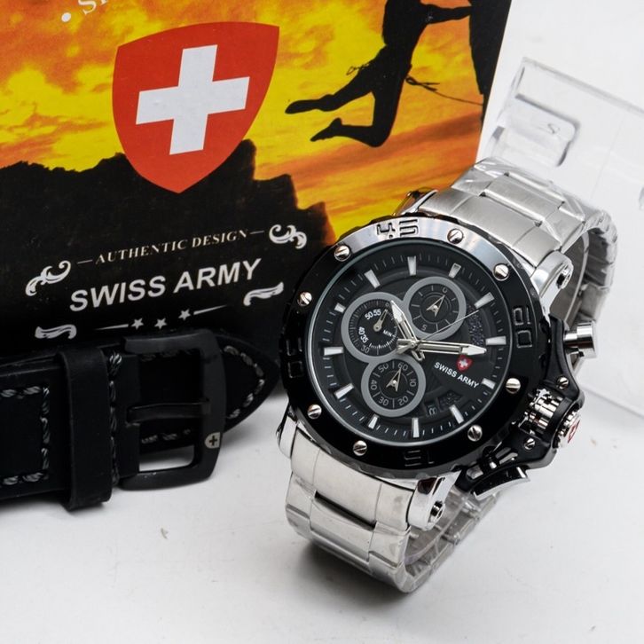 Jam Tangan Swiss Armii H525 Pria Premium – Chrono aktif, tampilan tanggal, fullset dengan box eksklusif, tali kulit berk