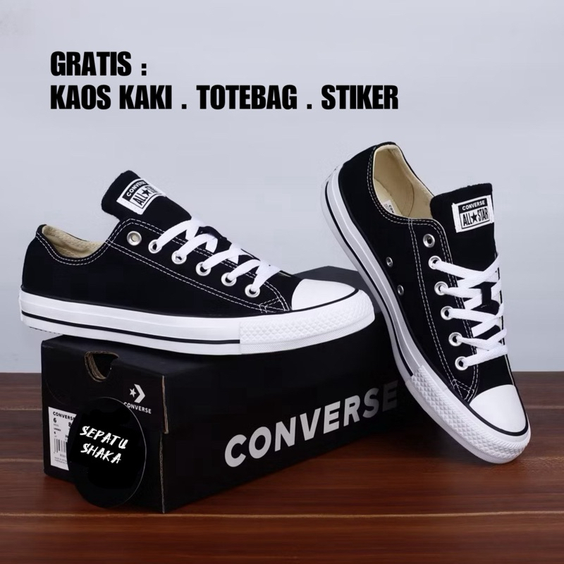 [PROMO] SEPATU CONVERSE CHUCK TAYLOR ALL STAR OX BLACK WHITE HITAM PUTIH CLASSIC LOW / SEPATU SEKOLAH
