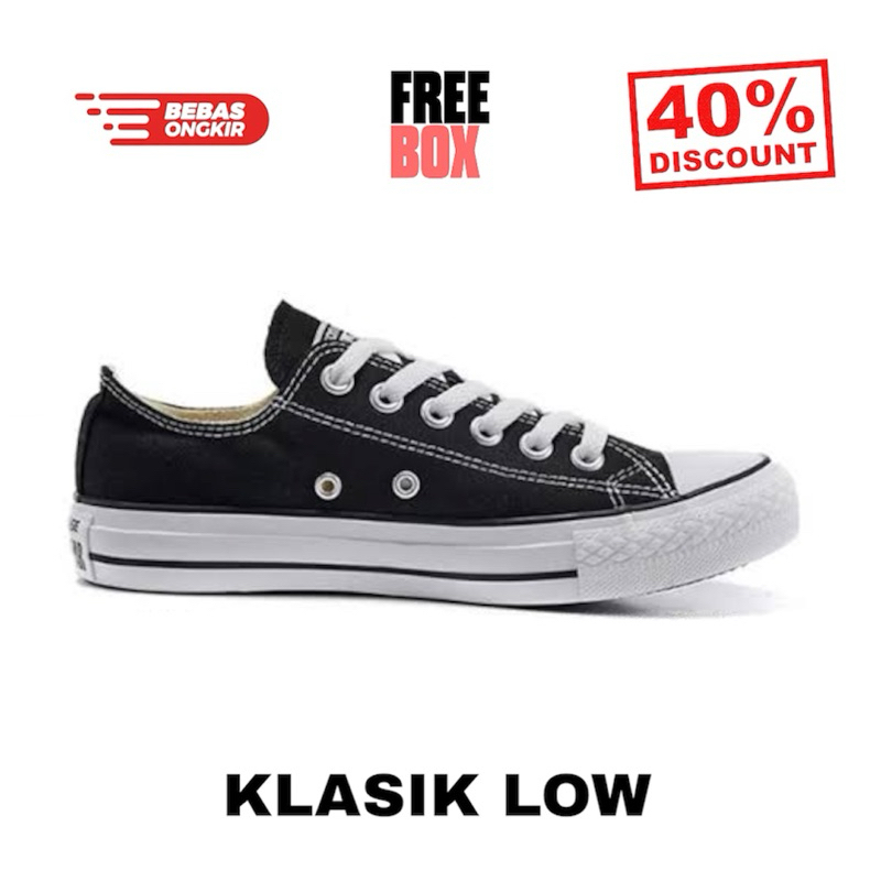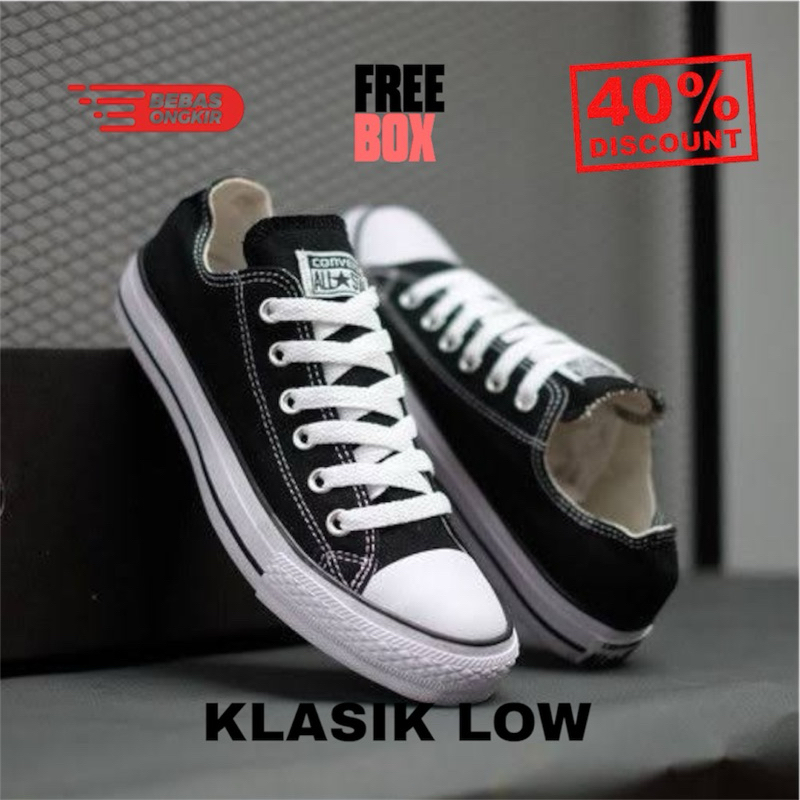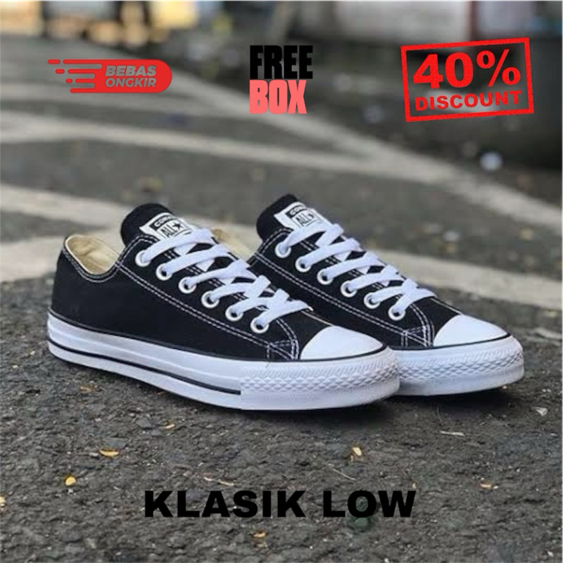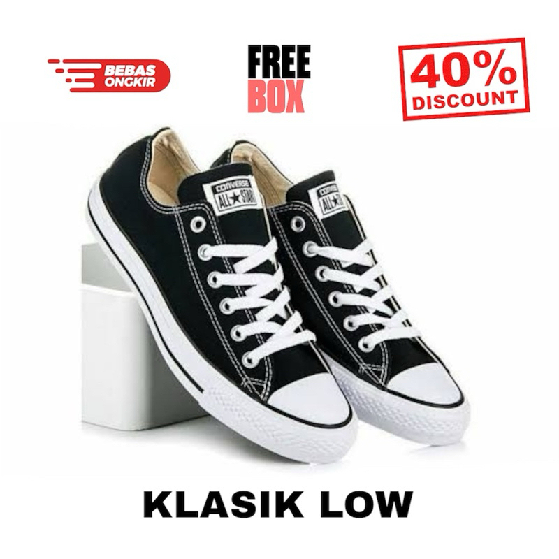 [PROMO] SEPATU SEKOLAH CONVERSE CLASIC ALL STAR BLACK WHITE OX BNWB SEPATU KASUAL - SEPATU PRIA WANITA