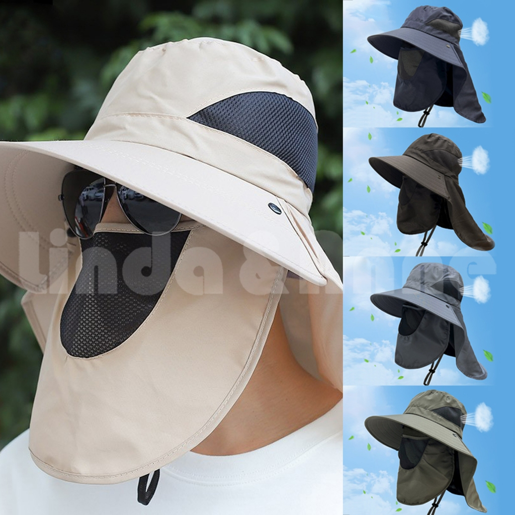 Topi Rimba Hiking Topi Visor Lipat Anti Uv Protection Dengan Cadar