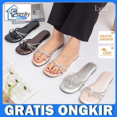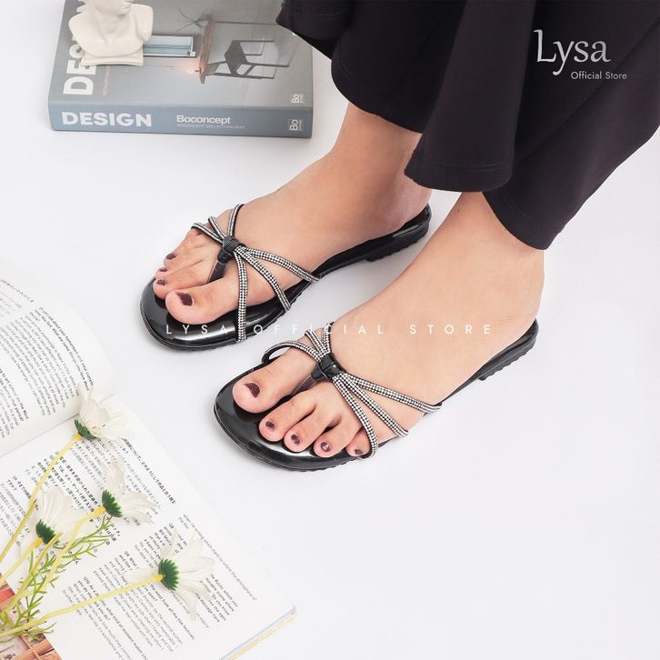 SANDAL WANITA IMPORT SANDAL WANITA KEKINIAN LYSA SANDAL FLAT WANITA LYLC VARIASI TALI BERLIAN BUSA EMPUK LS06